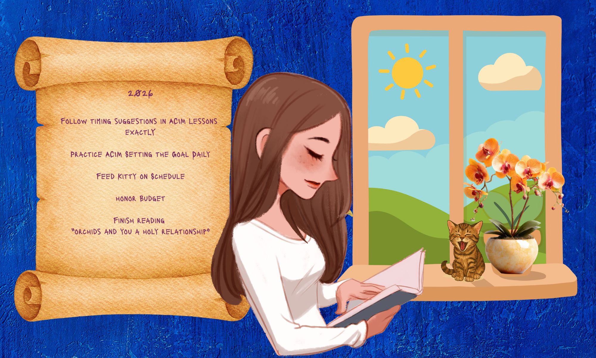 In bringing intentions to the table with ACIM, I’ve found that it works well to go high. Rather than trying to fix ourselves or someone – instead to aspire to an understanding of our identity as ACIM defines it. Instead of “Prosperity” what about “showing up well for the responsibilities I’ve taken on”. Sometimes I’ve worked with specific words as a theme for the year- and holy spirit shows me a whole new way to look at something. Beauty, truth, justice.